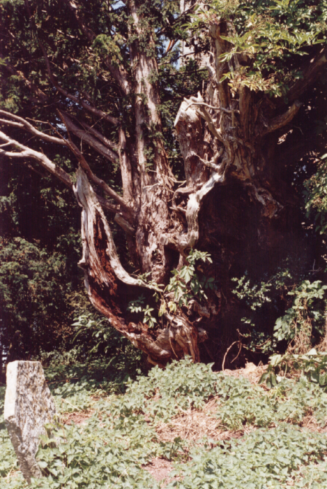 Notes: A substantial fragment of an ancient tree grows on the slope SW of the church. Also a fine younger specimen by the path leading to the church.