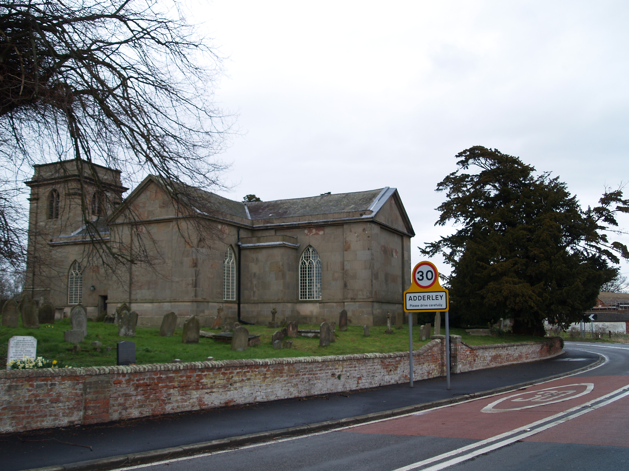 Notes: This churchyard is adjacent to the A 529. It is a Grade 1 listed building, cared for by the Churches Conservation Trust. In 1851 Bagshaw's History and Gazetteer of Shropshire noted that 'the church-yard is ornamented with several fine yew trees, and the ancient font has been placed in the church-yard, and converted into a sun dial.'