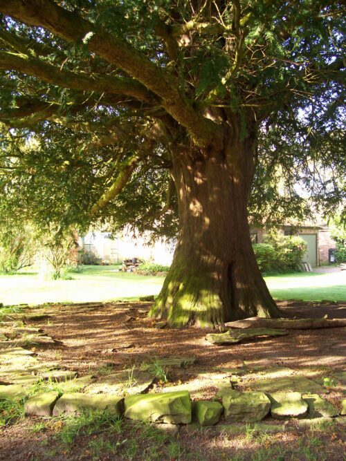 Notes: This yew grows in the garden of a house built circa 1630, on the site of either a previous dwelling or a place of worship. It is reasonable to consider that this yew might have been planted when the house was built, perhaps to acknowledge the sanctity of the site.