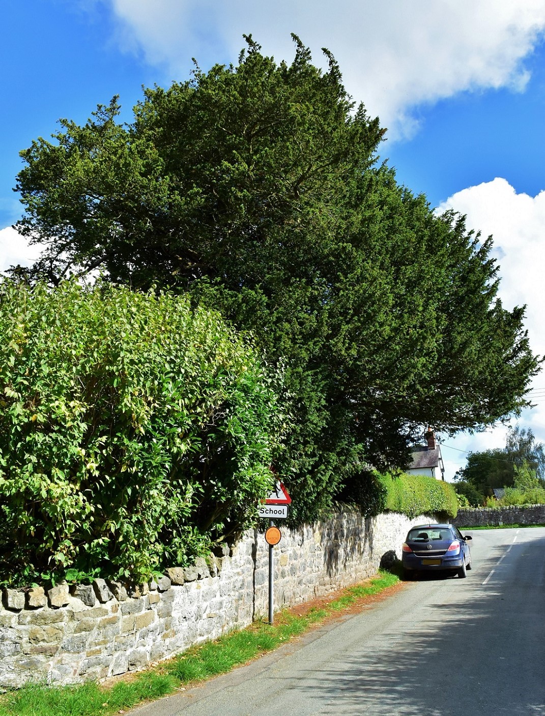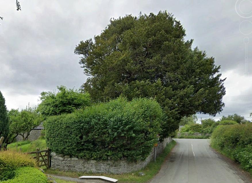 Notes: Paul Wood (2017): Along Twitchen Road on the south of the village, on the north side of the road is a property boundary of a landscaped garden belonging to Orchard House. In 1988 Margaret Williams, owner of what was then called Upper House, wrote the following to David Bellamy at the Conservation Foundation: "Upper House tree branches over the road from Clunbury to Twitchen, and has been used for shade and shelter for travellers down the ages. It is said that early in this century that the haberdasher's horse and cart would make rendez-vous in the village there each quarter, and that the buyer of rabbits and poultry likewise each week. When we came to this 'quietest under the sun' village 30 years ago, my daughter made camp fires too near the tree and singed it somewhat. The late snowfall ealry this year settled on the 'hands' of the lower branches and snapped them. A local forester heard the noise and rose from his bed only to see that the road out of the village was blocked by the branches, and kindly mustered a force to move them before knocking us up to say he was just off to work!