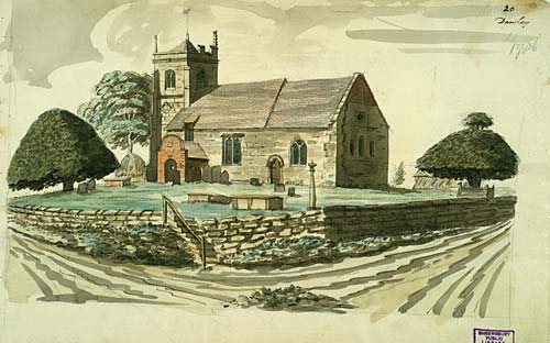 Notes: Two yews, painted in 1786 by Revd. Williams.