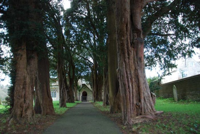 Notes: The church is Norman in origin and was restored in 1872. Of the eleven trees that form an avenue from the north gate to the porch, seven are common yew.