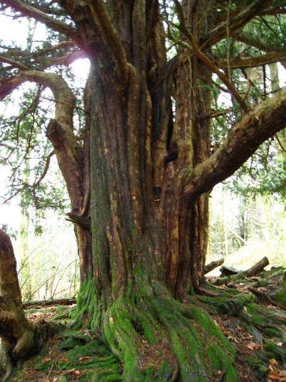 Notes: The yew grows in Great Knott Wood, by the steepest part of the first path from the main entrance.