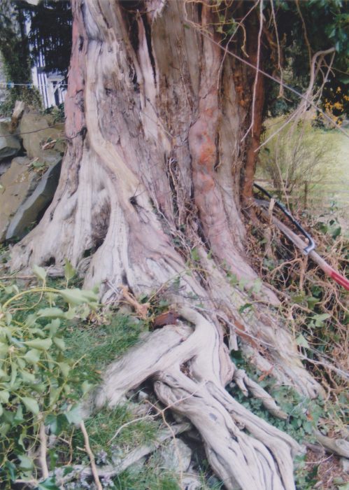 Notes: Now a private garden. There are yews visible from the main road, growing close to what appears to be a black and white timbered house. But it seems that this site might have been known about for centuries. Pugh's 1816 Cambria Depicta (Tour through north Wales) is reported to contain the following:"About 2 miles off Meifod I crossed some meadows to see a yew-tree which, from the road, appeared very formidable, and so indeed it proved on a nearer examination. Not being able to reach the medium thickness, I measured the smaller circumference, which I found to be twenty-one feet. A traditional story among the country people, says, that in early times there was an attempt to build a church on the very spot where the tree now stands; that they had commenced, but that the workman's labour of the day, it became the devil's amusement to undo; and that his sable majesty persisted in carrying the stones placed in the building to the spot where now stands the church at Meifod, and that at length a voice was heard to pronounce, "Ymma myna ei fod" - "Here shall it be."