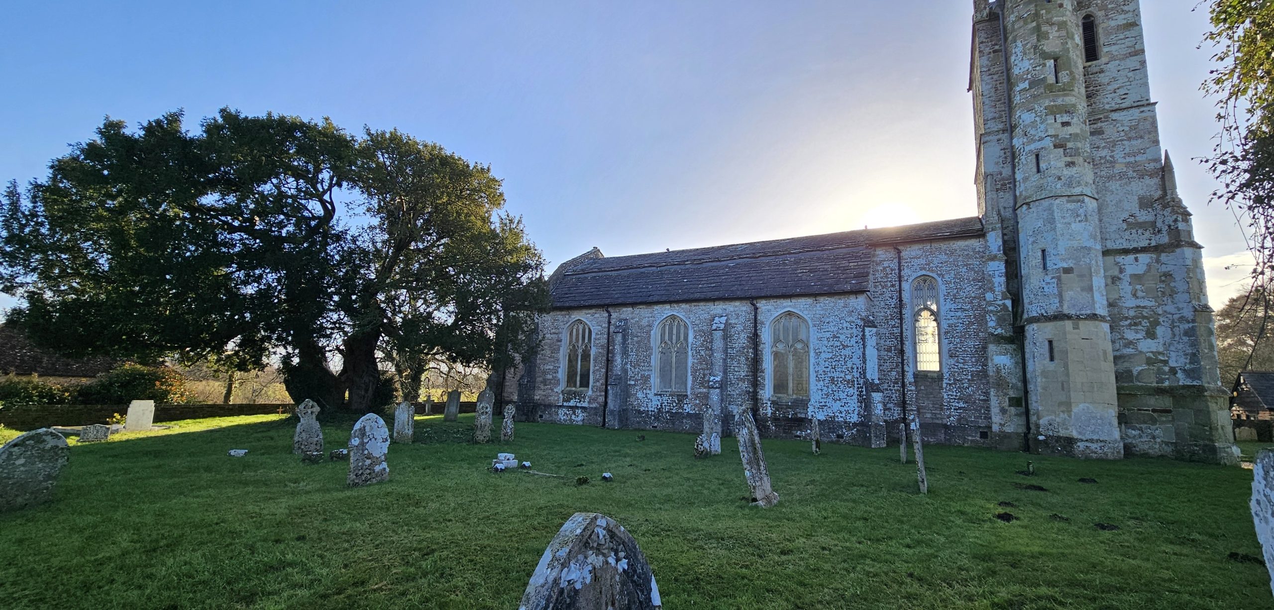 Notes: All Saints, Harbridge lies west of the village of Ibsley on the west bank of the River Avon and is approached by the picturesque Ibsley Bridge and the adjoining water meadows. There has been a church on this site since the mid-15th century, serving a small rural community. The tower is all that remains of the original Church. The yew grows NE of the church.