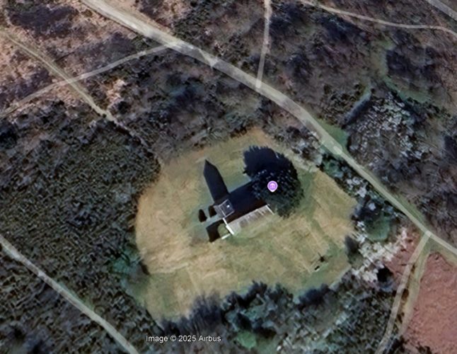 Notes: The yew grows to close to the building on the east side of a seventeenth century church.