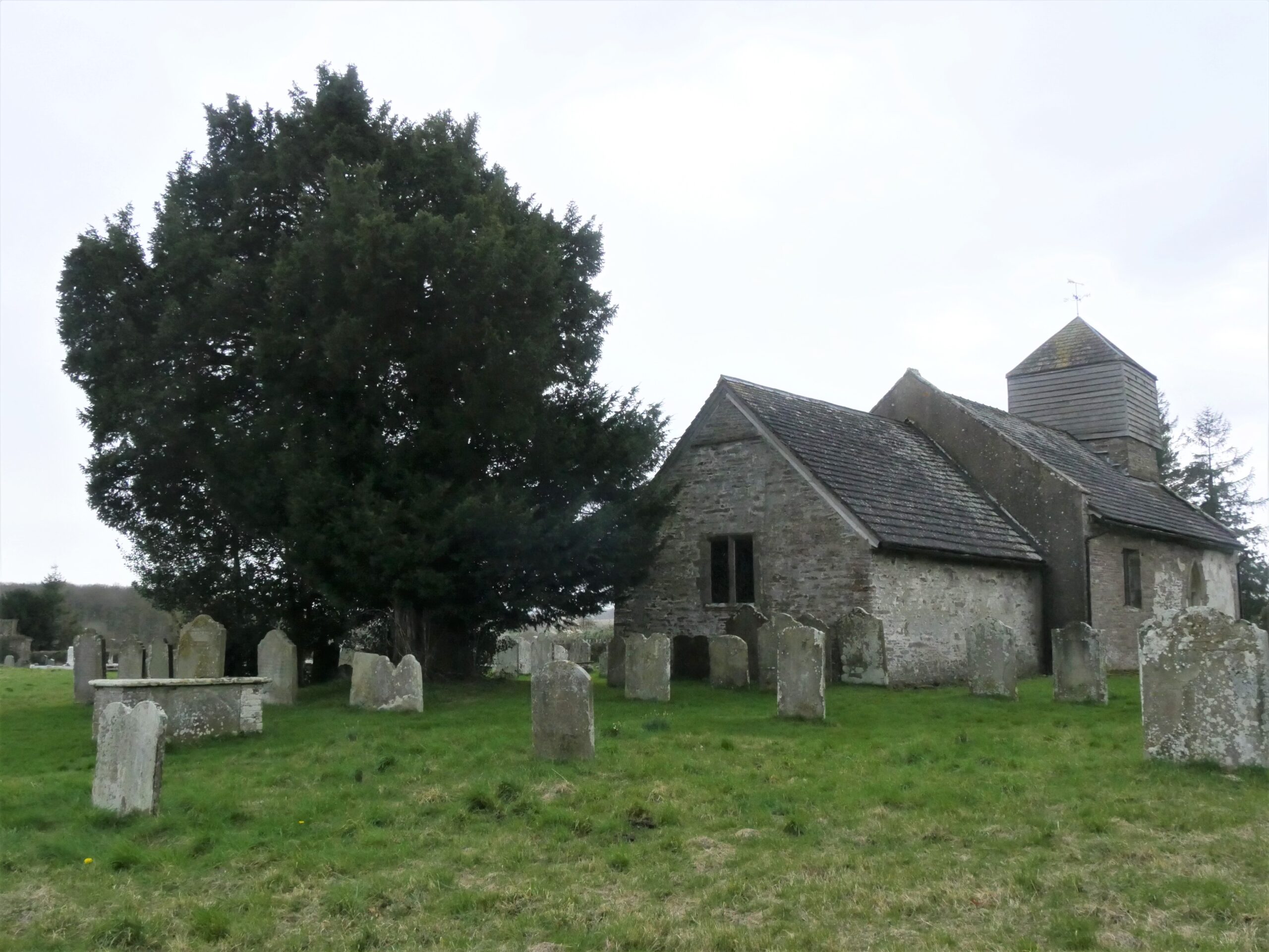 Notes: In an imposing location reached after miles of narrow lanes and poor signposting. The recorded yew grows at the east end of the church on the south side. There are in addition 4 younger yews, recorded in 2000 by Pat Denne with diameters of 60cm, 50cm, 50cm and 40cm.