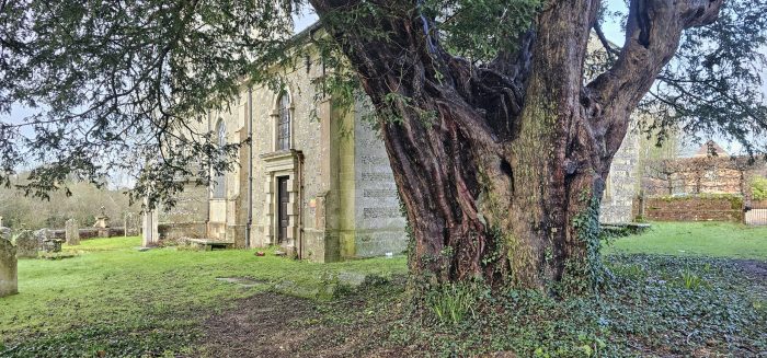 Notes: The yew grows ESE of the church, rebuilt in the 18th century. Entrance to St Giles park in adjacent to the churchyard.