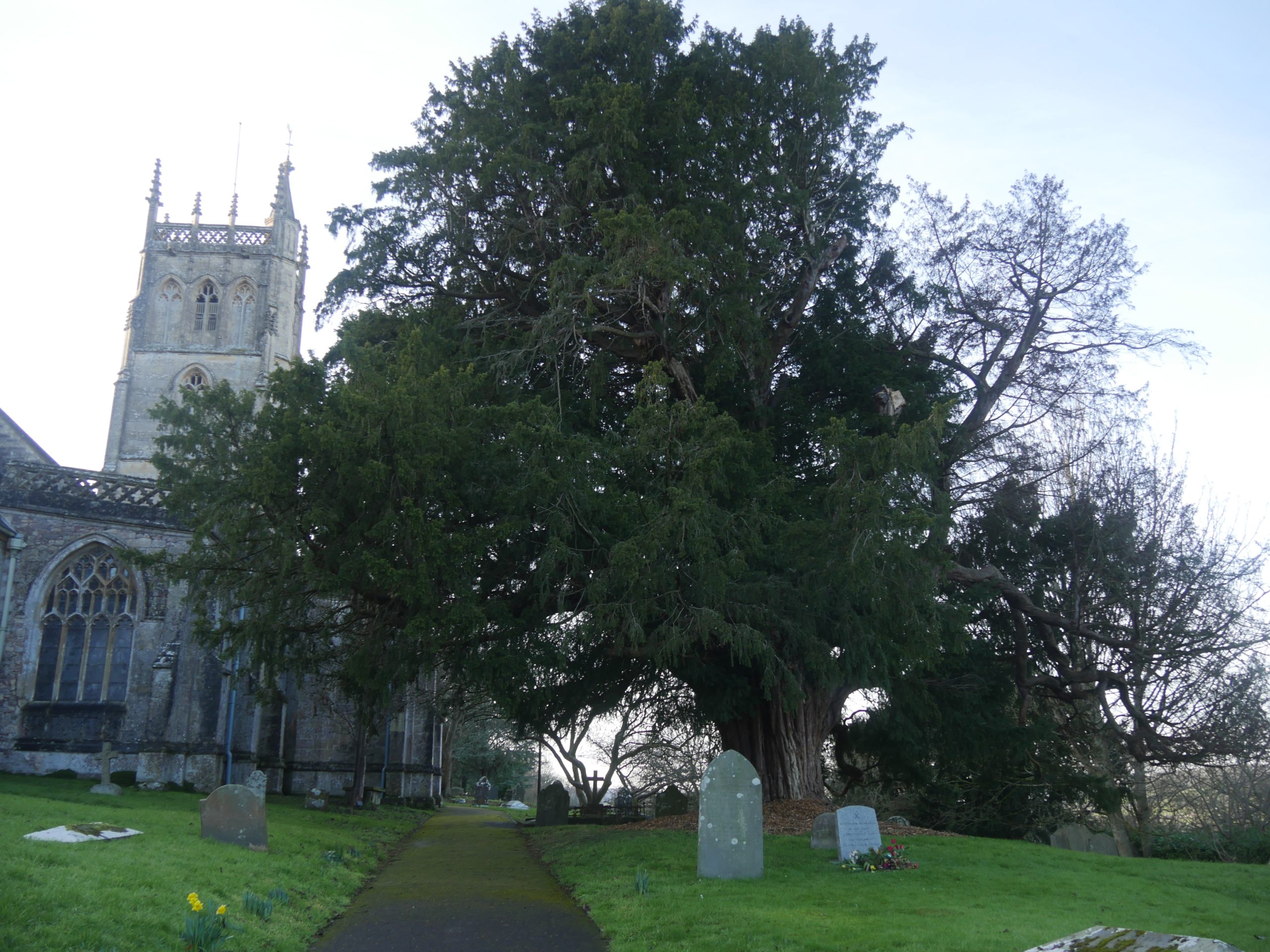 Notes: The present church was dedicated in 1236, although it is thought likely that it was first built in the 10th century when Glastonbury Abbey acquired the estate. The significant yew grows NE of the church.