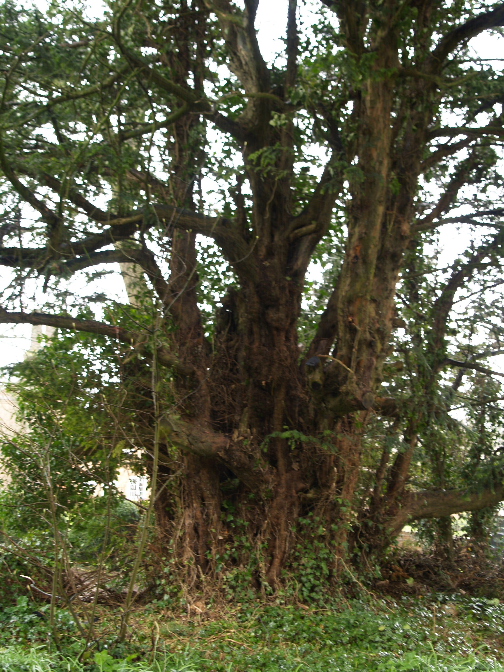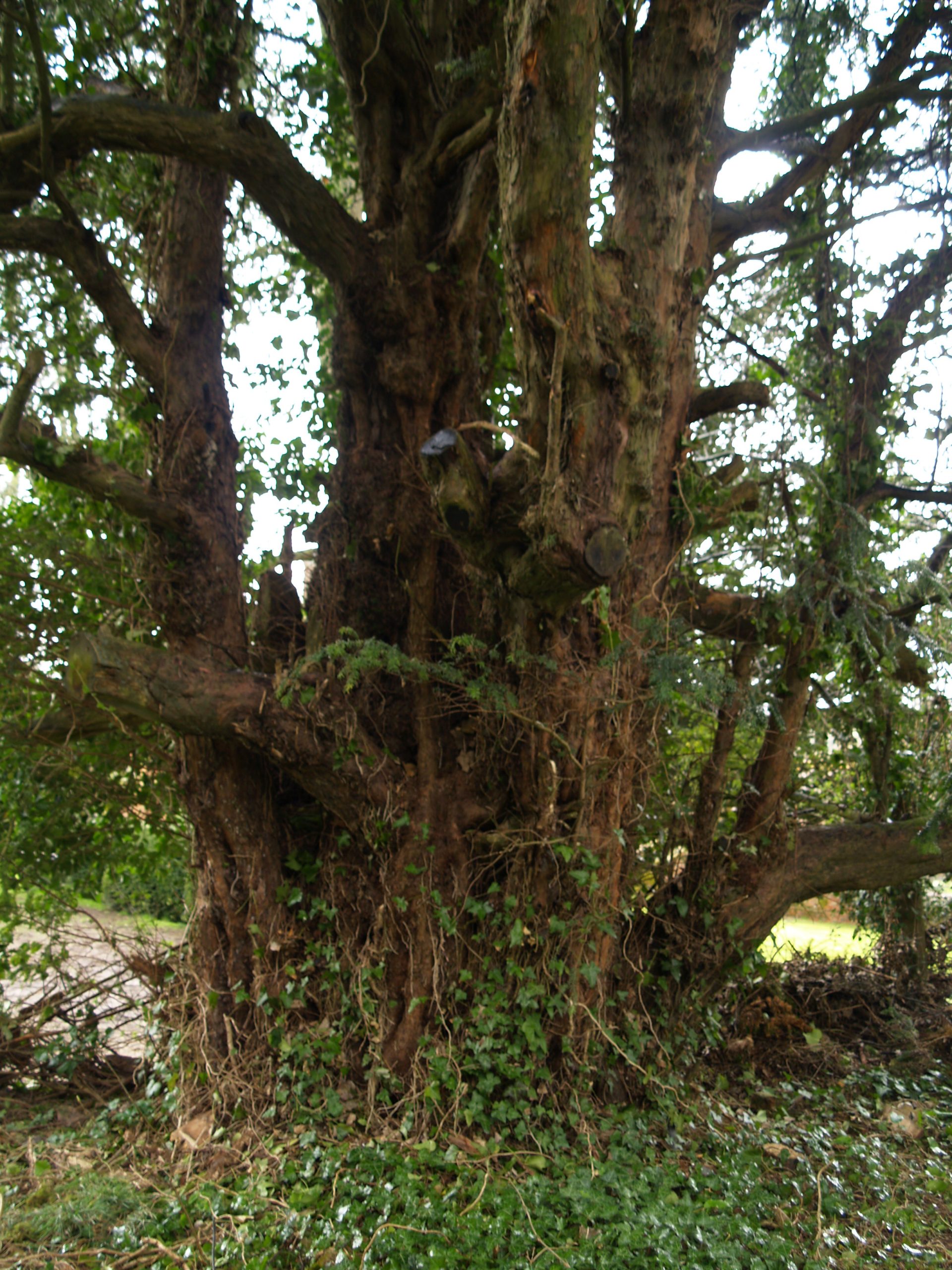 Notes:January 2006 – Peter Andrews: In the north west corner of the old graveyard. A battered old tree with the remains of a tree house. The trunk and remaining branches covered in ivy. Girth estimated as one side of the yew hangs over a large private garden. The yew was much damaged.