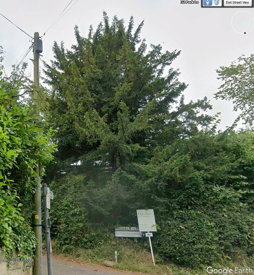 Notes:This yew, on the corner of Siddals Lane and Park Road is approximately 100 yards north of the church. Closer examination is needed of a yew that is now in a private garden.