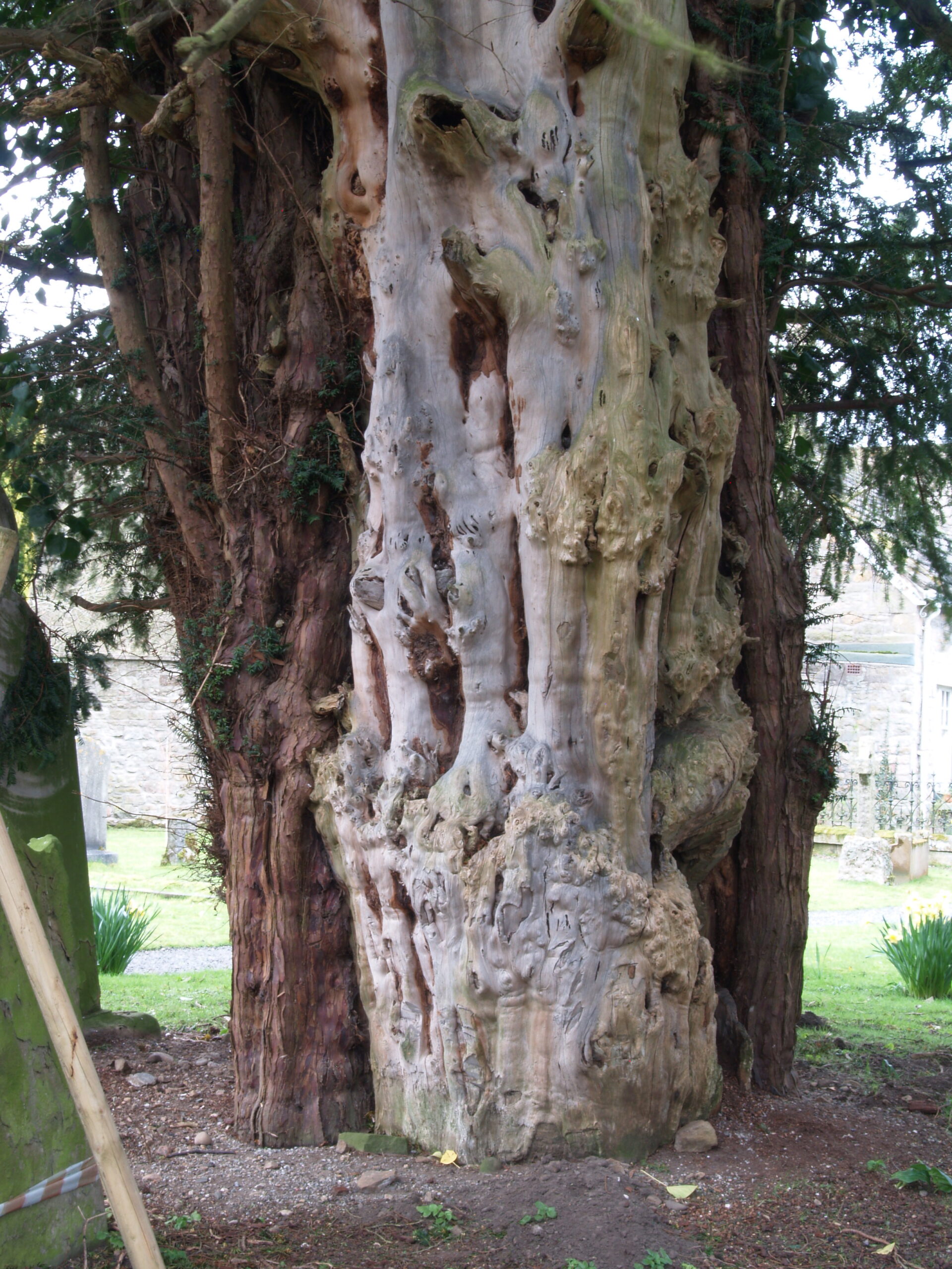 Notes:SW of the church. Large sections of the original trunk are visible to a height of 20′, with new growth around three quarters of the bole. Girth 15′ 10” (483cm) at 3′.