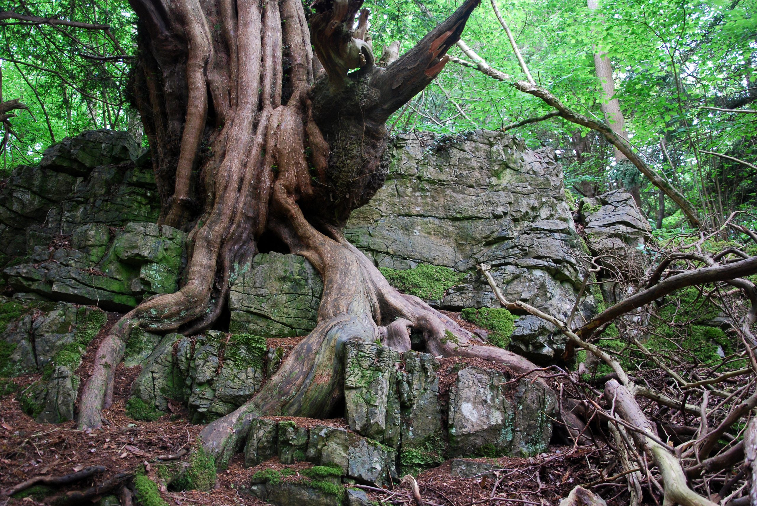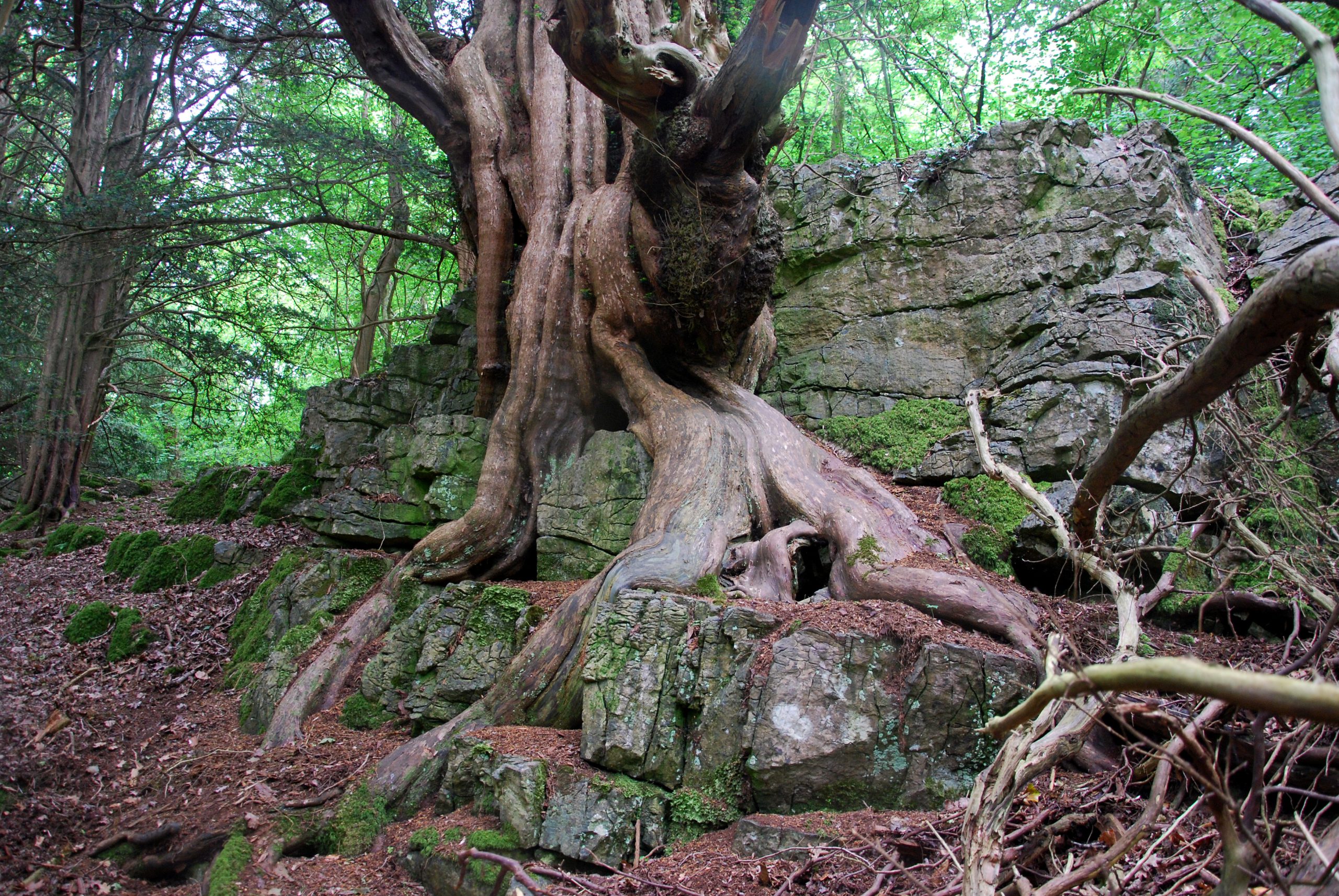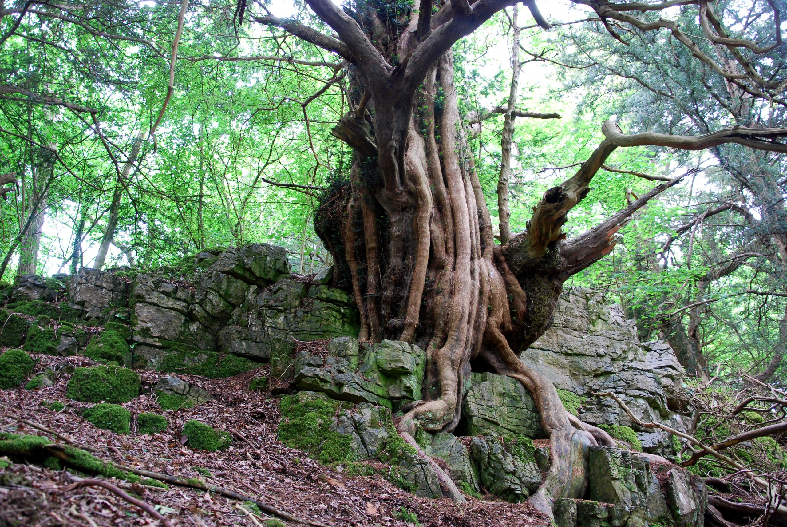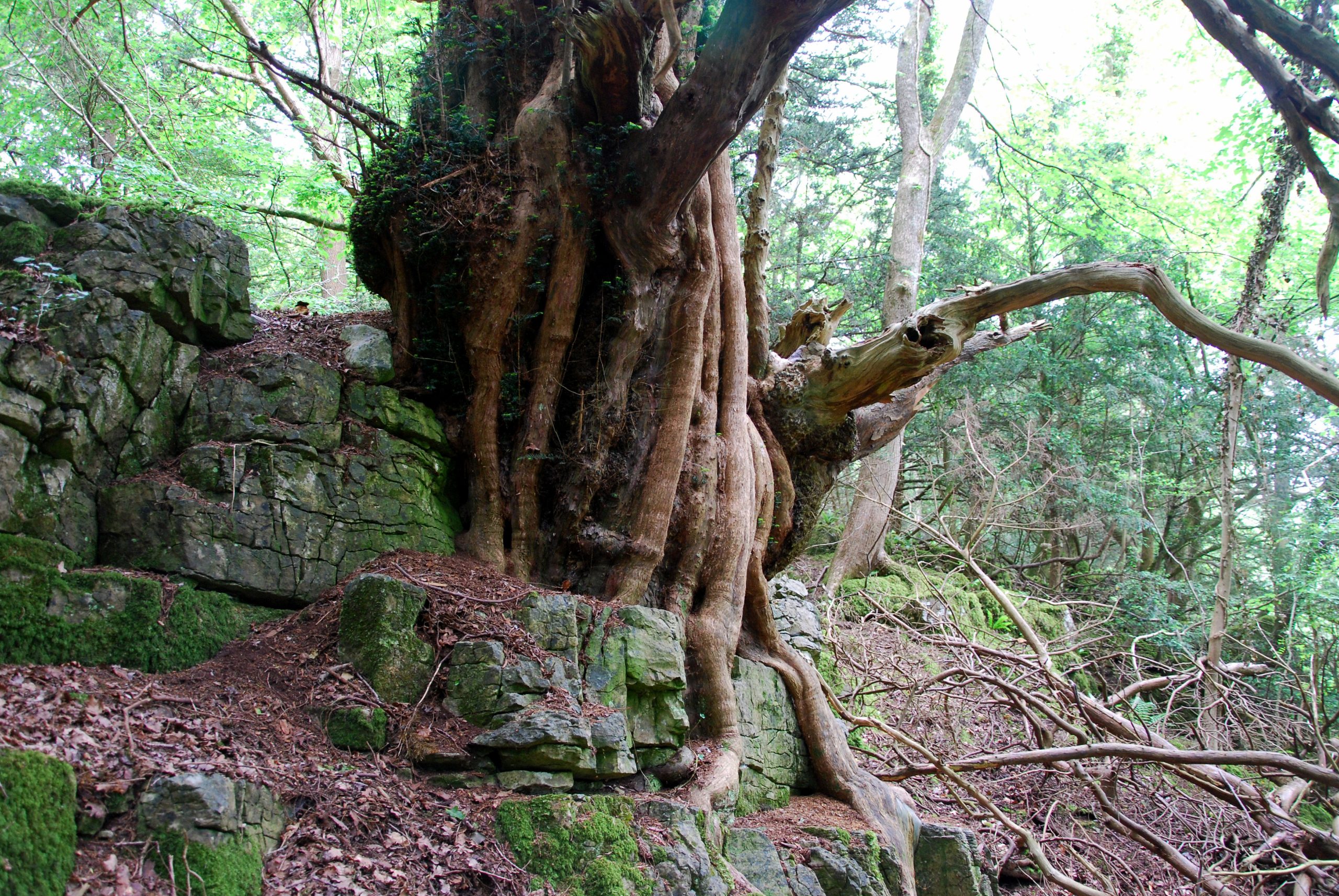Notes:March 2006 – Most of the old yews are found by taking the public footpath running to the south of and parallel to the road through the combe (ST484664). These photos are of the largest yew so far discovered in this area.