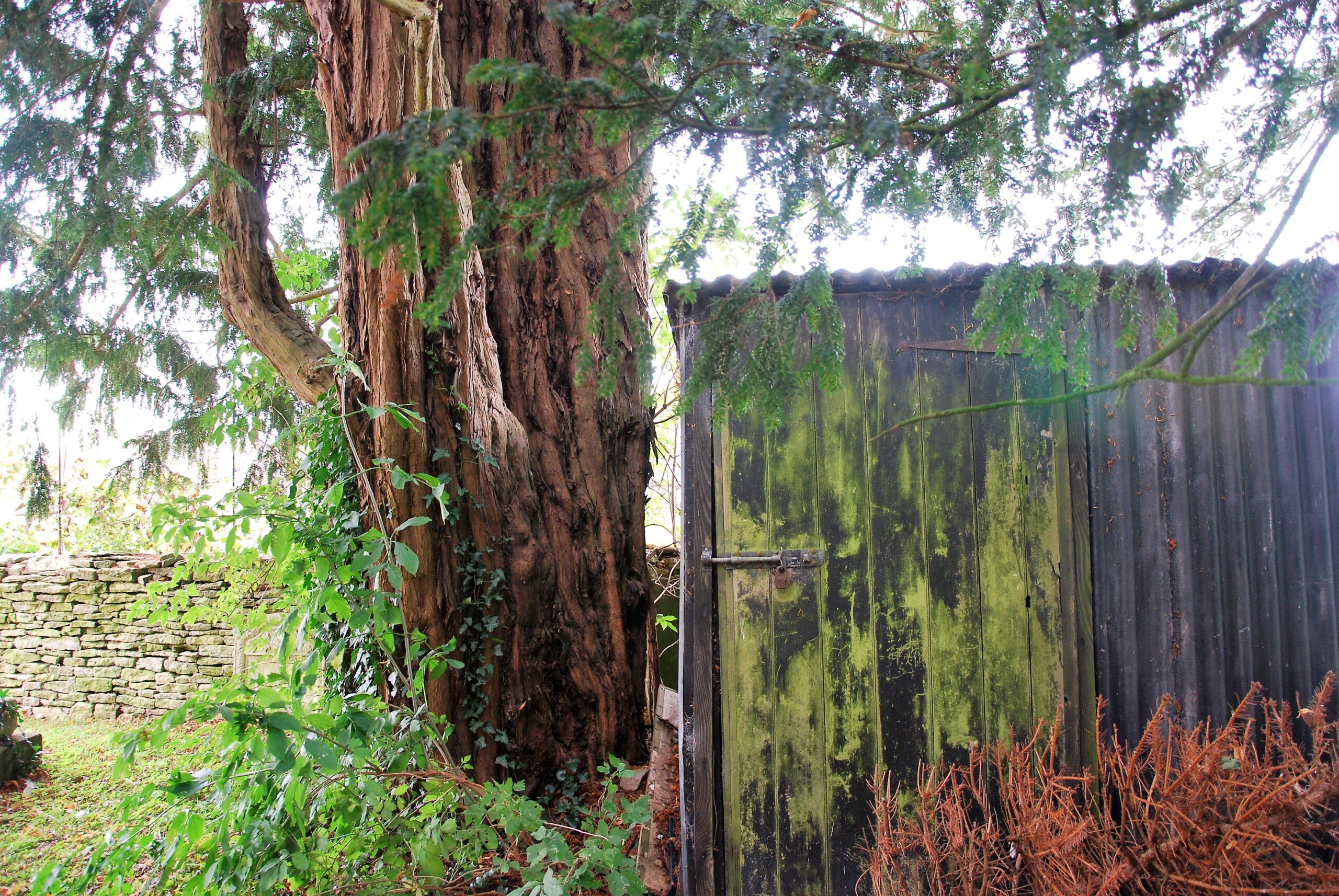 Notes:October 2010 – Peter Norton: The notable yew, seen in the first two pictures, grows SE of the church, alongside the shed. Girths recorded as follows: 12′ 4” (376cm) at 1′ and 12′ 11” (394cm) at 3′.