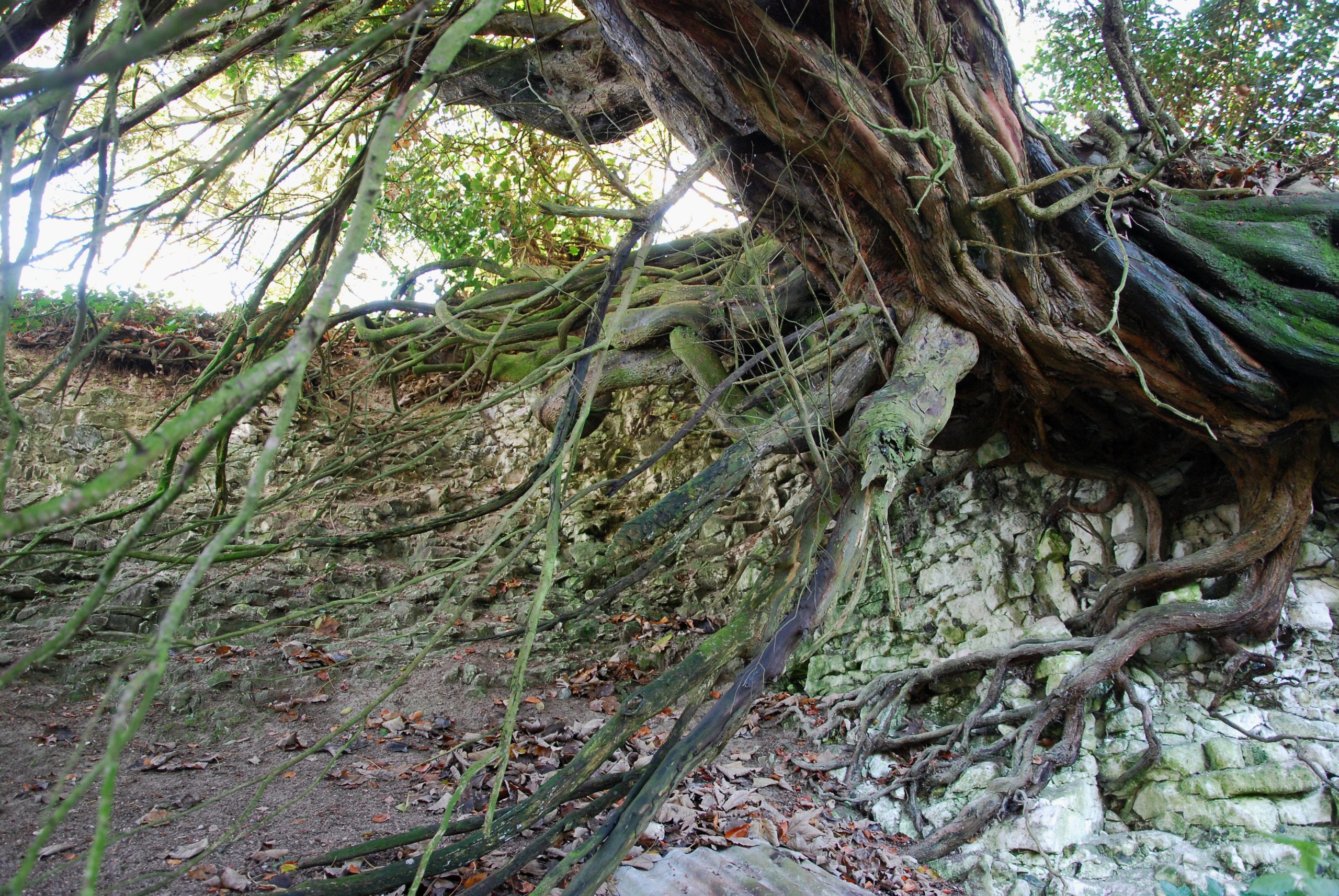 Notes:Tree could not be measured due to its position. It grows some 15’ up from the ground with branches following the contour of the slope.