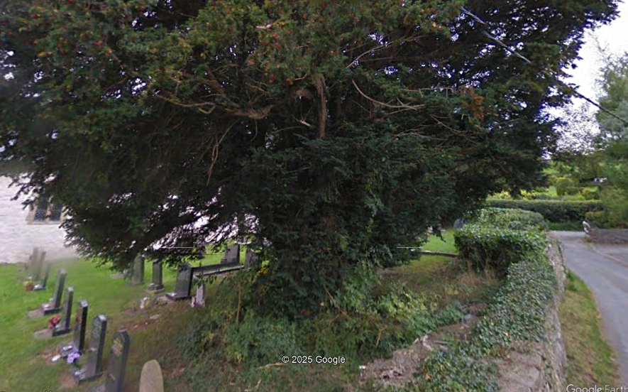Notes:The yew grows north of the church at the perimeter and had a girth of 375cm at the ground in 1984.