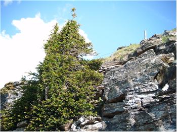 Notes:Ancient Tree Hunt 68482 – Grid reference SE08769678. The yew has been dwarfed and stunted by long exposure to the NW winds. It is however in good foliage and is one of the smallest yews on Ellerton Scar, although not necessarily the youngest.