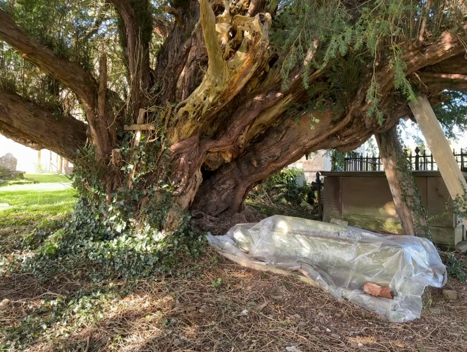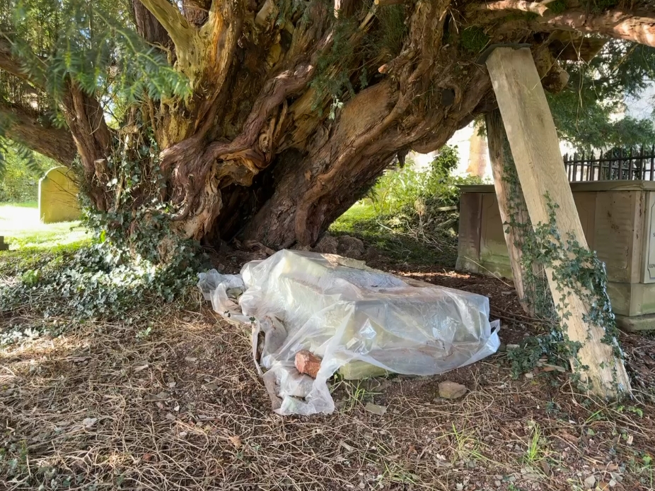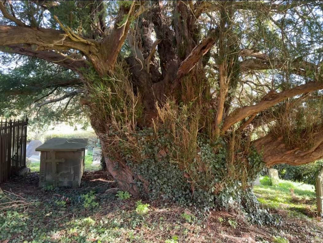 Notes:A large hollow yew, leaning and propped. The area around the tree was cleared in 2006 making this once more a focal point in the churchyard.