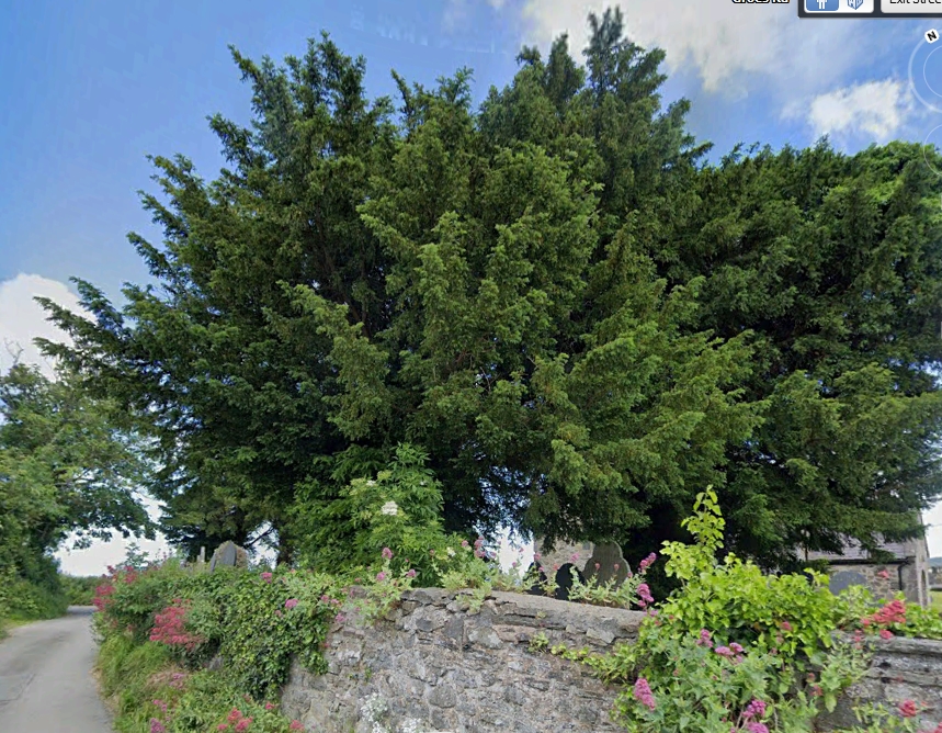 Notes:Seven yews were noted at this site in 2000, but no details taken. Cornish (1946) had recorded a “very old yew.” In 1996 the Clwyd Powys Archaeological Trust noted 2 mature but not very large on the west side. They also noted a church record stating that one of the yews here was planted in 1736. For now it is not known which of the 7 is that tree.