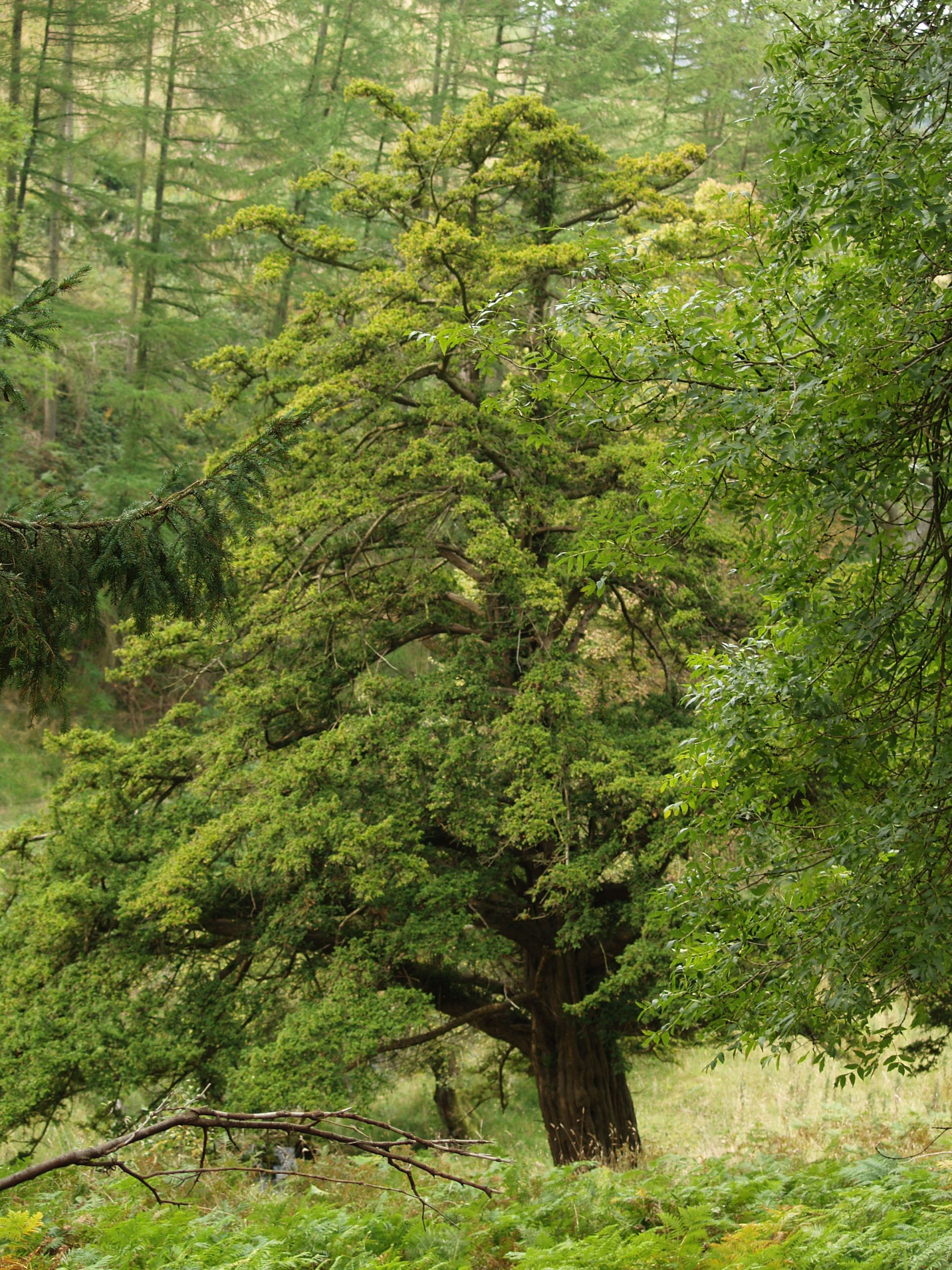 Notes:When Thomas Pennant visited this area in about 1773 he recorded that from King Arthur’s Crag (SJ225470) to World’s End (SJ237477) in an area bounded by precipices, there were ‘vast eugh trees’. We observed fewer here than on the slopes and cliffs south of Rock Farm. The last photos show a single yew growing close to the road at World’s End.