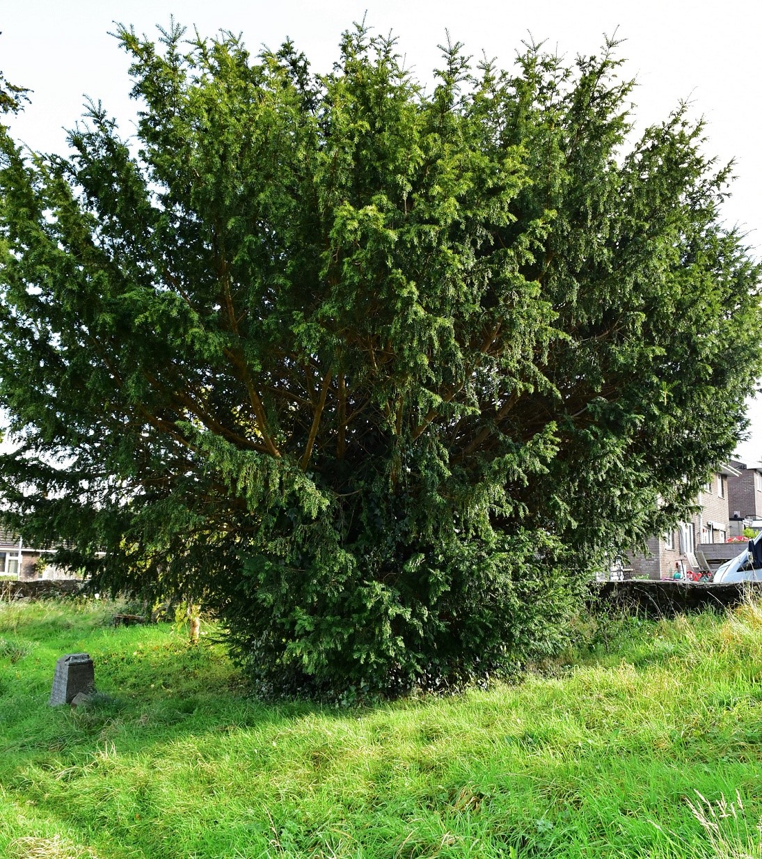 Notes:Tim Hills 2006: I was informed that this yew – number 7 – was planted in about 1980 to replace the two felled yews that once grew either side of it. The photos show its rapid growth between 2006 and 2017.