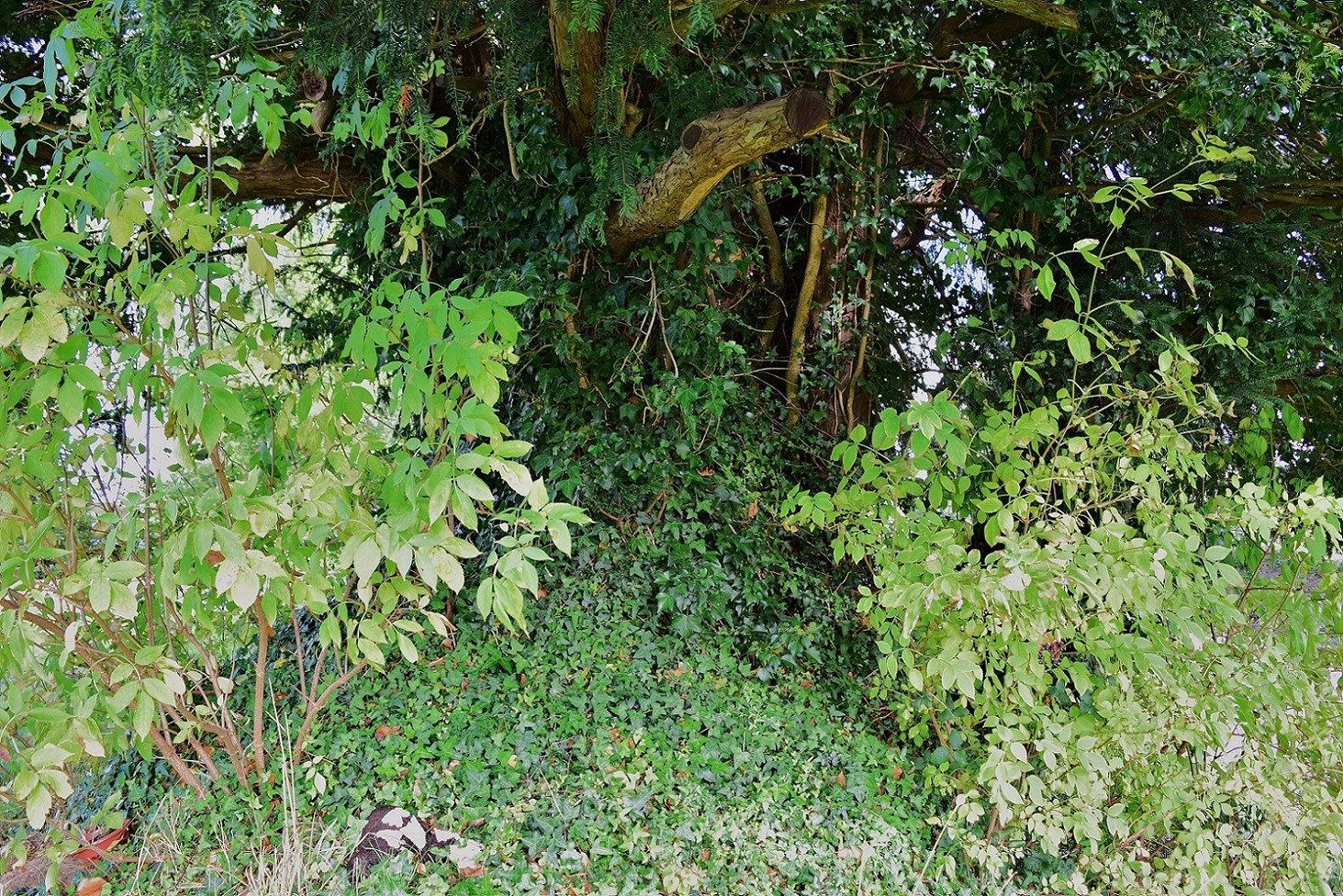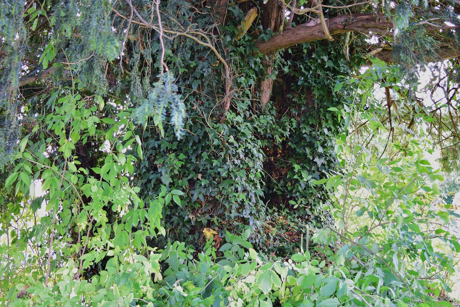 2016 – Paul Wood: I found the Churchyard here well kept and on a lovely day was possible to see some great views back up towards Llanthony. Sadly the yew looked a little less inspiring. Virtually invisible behind thick, thick ivy that covered the ground and all parts way up into the crown. This tree needs attention. Measurement was not possible, nor photographing its hidden bole.