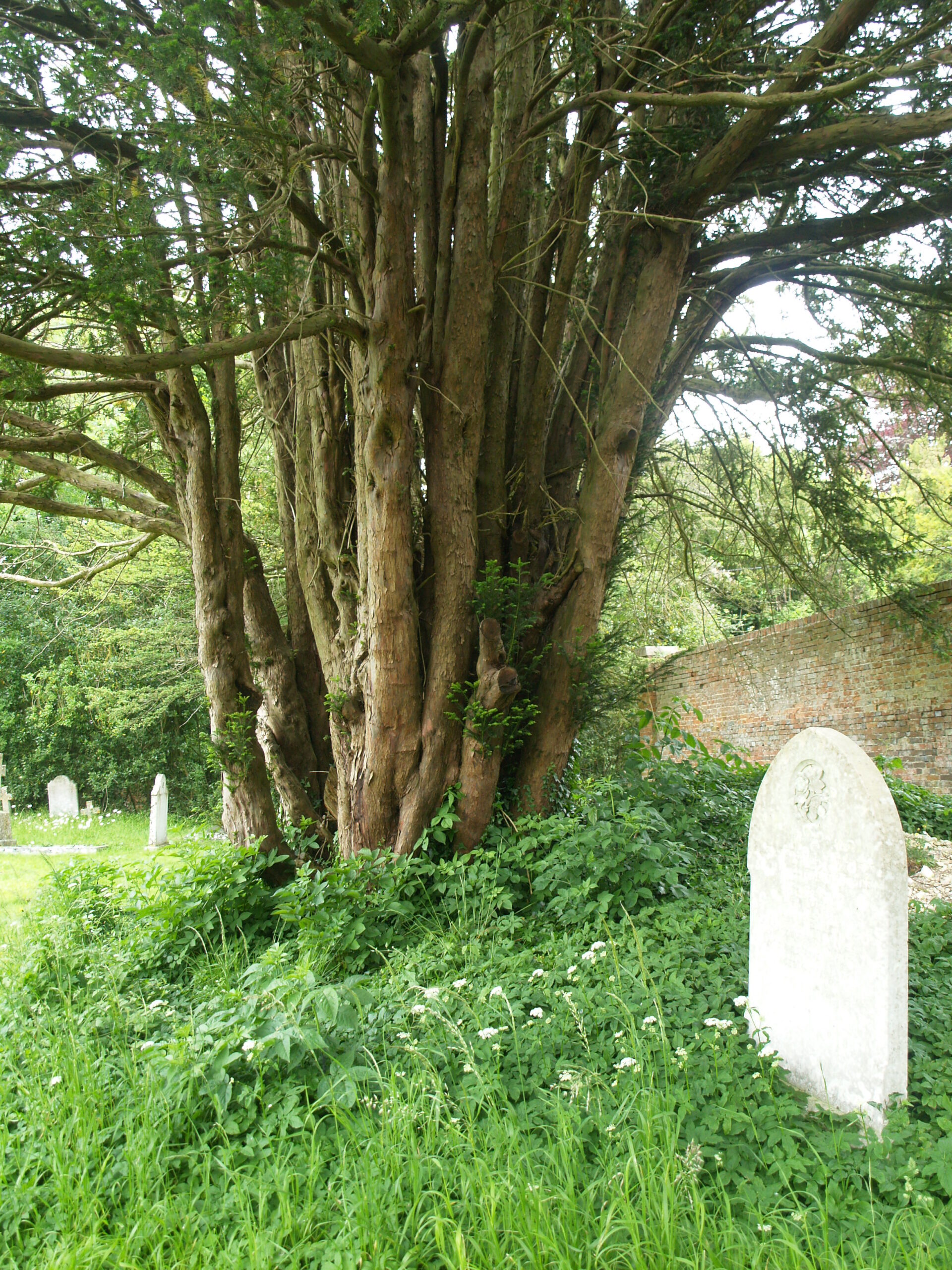 September 2005 – Russell Cleaver: Multi-stemmed tree on a rise in a large churchyard. Male, NE of church. Its girth may be large but the dozen or more stems are not ancient.