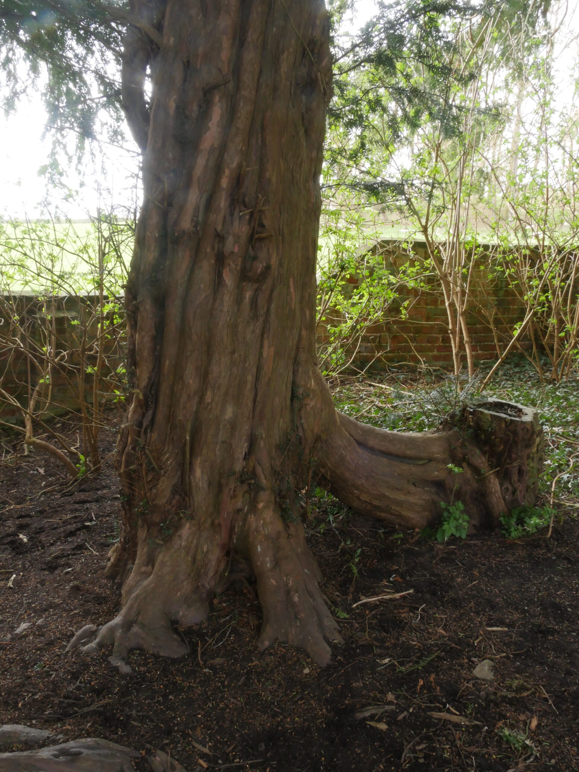 Notes:All 22 yews are seen here, starting with the tree furthest west. Girths, including that of the stumps are as follows: (1) 9′ 8” (2) stump 3′ 2” (3) 3′ 11” (4) 7′ 5” (5) 3′ 0” (6) 4′ 1” (7) 7′ 9” (8) stump 8′ 8” (9) 3′ 6” (10) 6′ 0” (11) 4′ dead (12) 5′ 3” (13) 4′ 0” (14) 3′ 0” stump (15) 7′ 4” (16) stump 8′ (17) 8′ 2” (18) 7′ 6” (19) 11′ 9” (20) 4′ 3” (21) 9′ 5” (22) 7′ 8”.