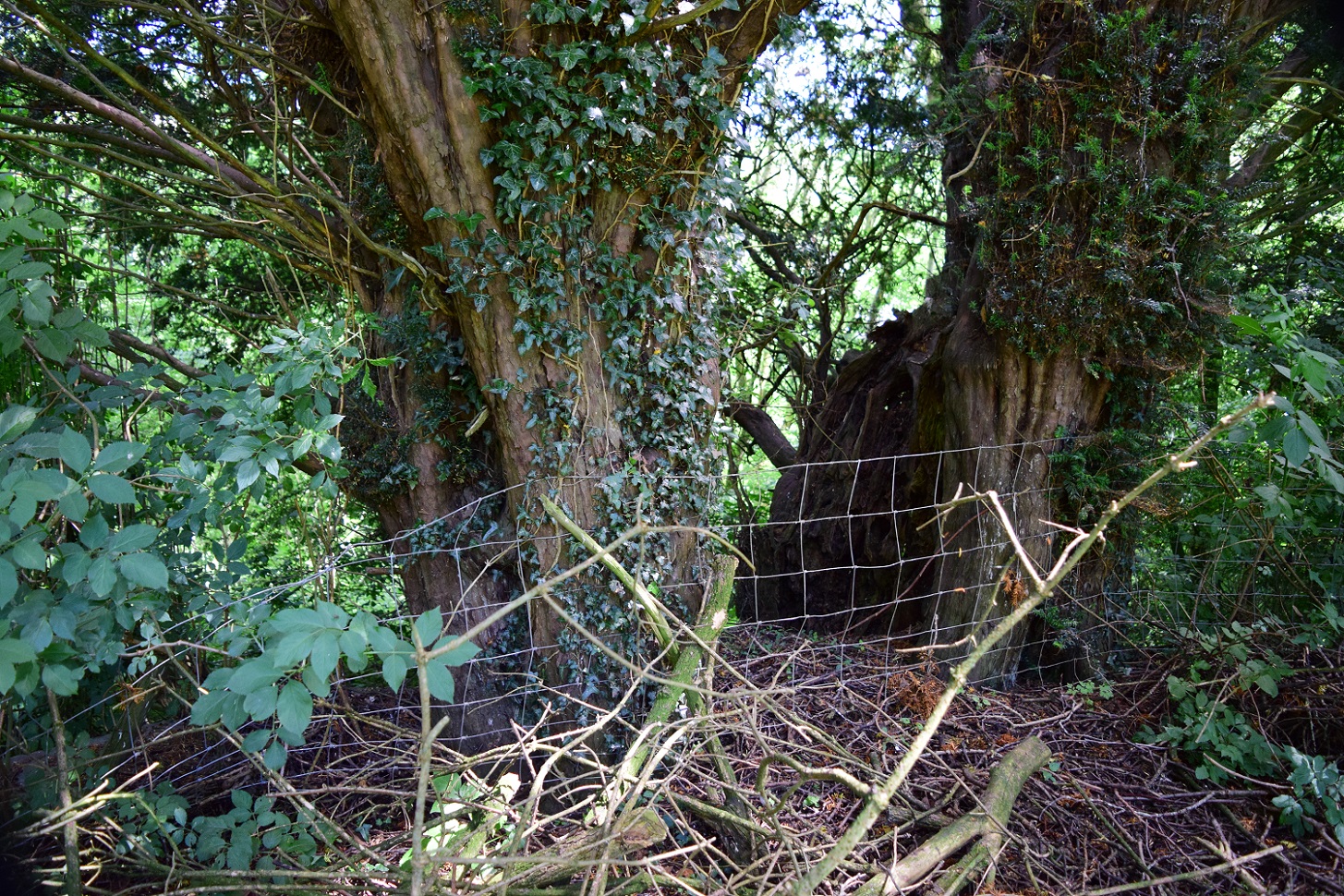Notes:Tree 3 on the plan, NE of the church. Two fragment trees, one a small hollow trunk, the other elongated.