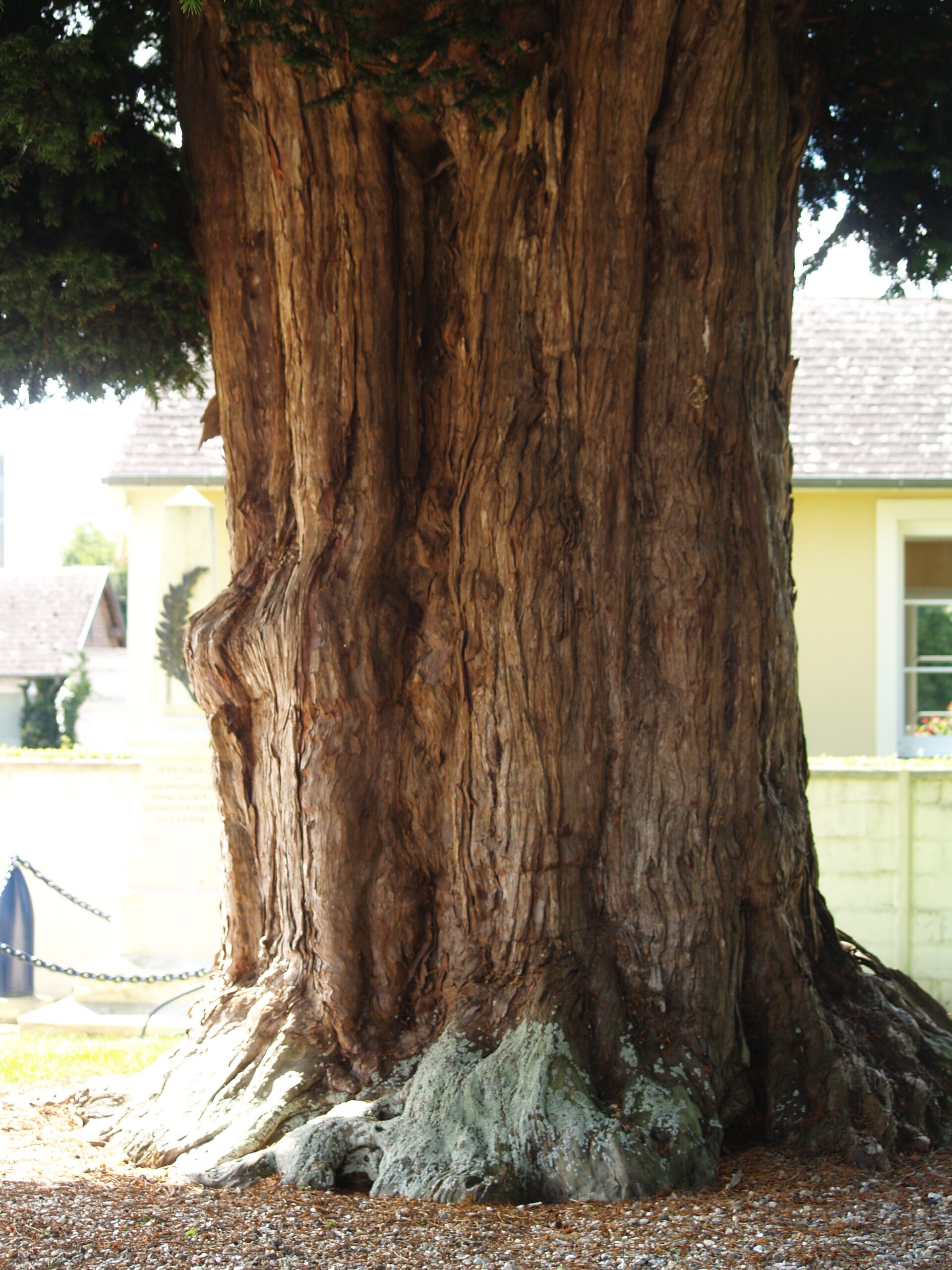Wim Peeters: Translation from the 1884 Annuaire des cinq departements de l’ancienne Normandie: The ancient yew that grows in front of the porch, grabbed our attention. ‘This tree’, according to the old and respectable pastor who has lived in the parish for more than fifty years, ‘dates back to the time of Saint Martin!’ While this is legend, it should be recognised that the long life of this tree species passes beyond ordinary calculations. An interesting remark appeared in the ‘Journal de Bernay’ earlier this month, giving the history of this tree of death. The author, M.A. Gardin, proven by very precise documents, shows us that the tree appeared in its funerarial possession on the end of the ninth century and still goes on in our days. He complains, with reason, that the church organisations have let a large numbre of these trees disappear, and he calls upon the authorities to conserve these faithful guardians that, having guarded for centuries the tombstones of past generations, have acquired the right for the respect of the present generations’.