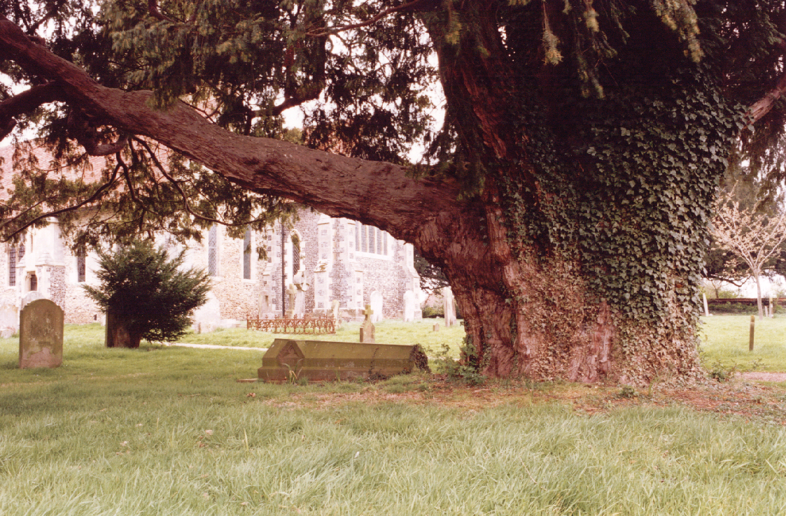 Notes:March 1999 – Tim Hills: Just inside the churchyard entrance and SE of the church. A substantial limb stretches 11m from the tree.
