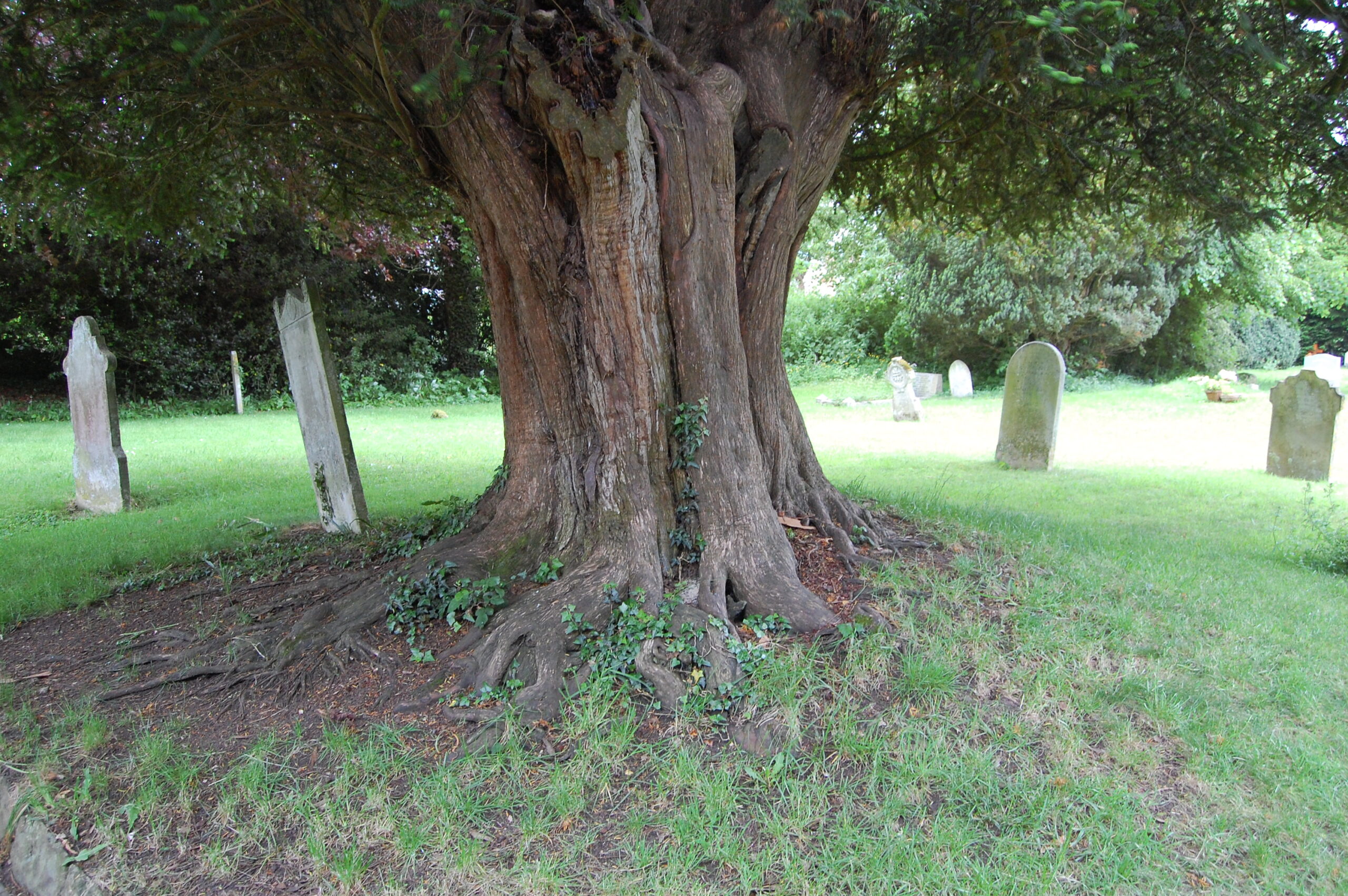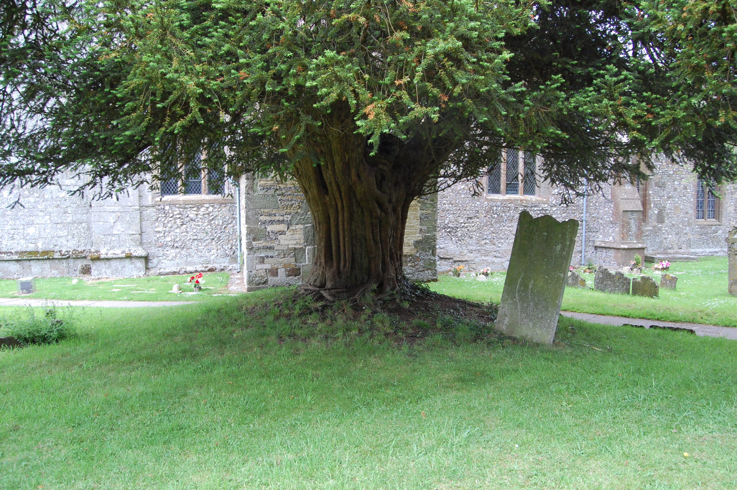 Notes:2003 – Tim Hills: The yew grows close to the south porch. A trunk of about 6′ leads to two main growth areas. There are many sawn off branches.