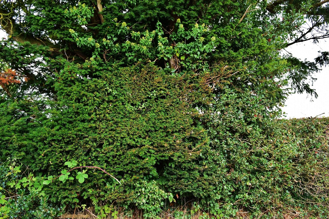 Notes:Paul Wood: This yew grows at NGR SO66578264 in Station Road. It is buried deep within a hedge and intertwined with a thick holly bush. A mechanical hedge cutter has taken a chunk of the east side of the bole and all the upper part of the tree has had its limbs removed.