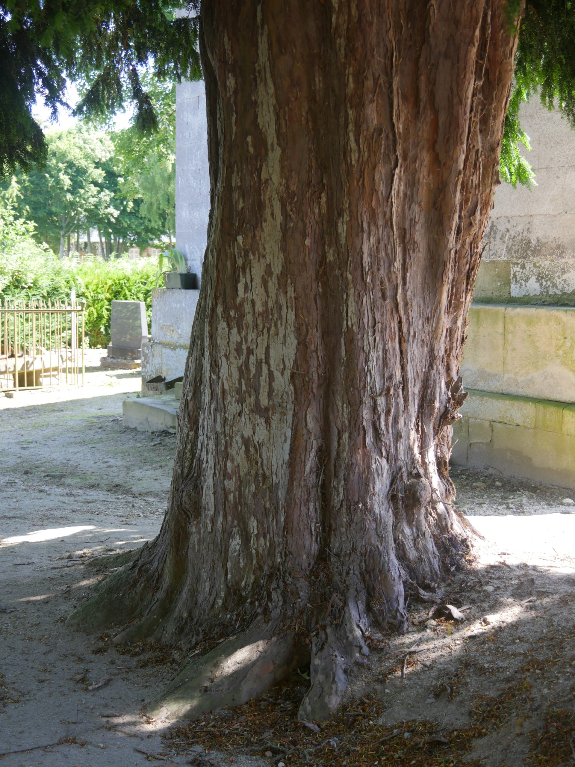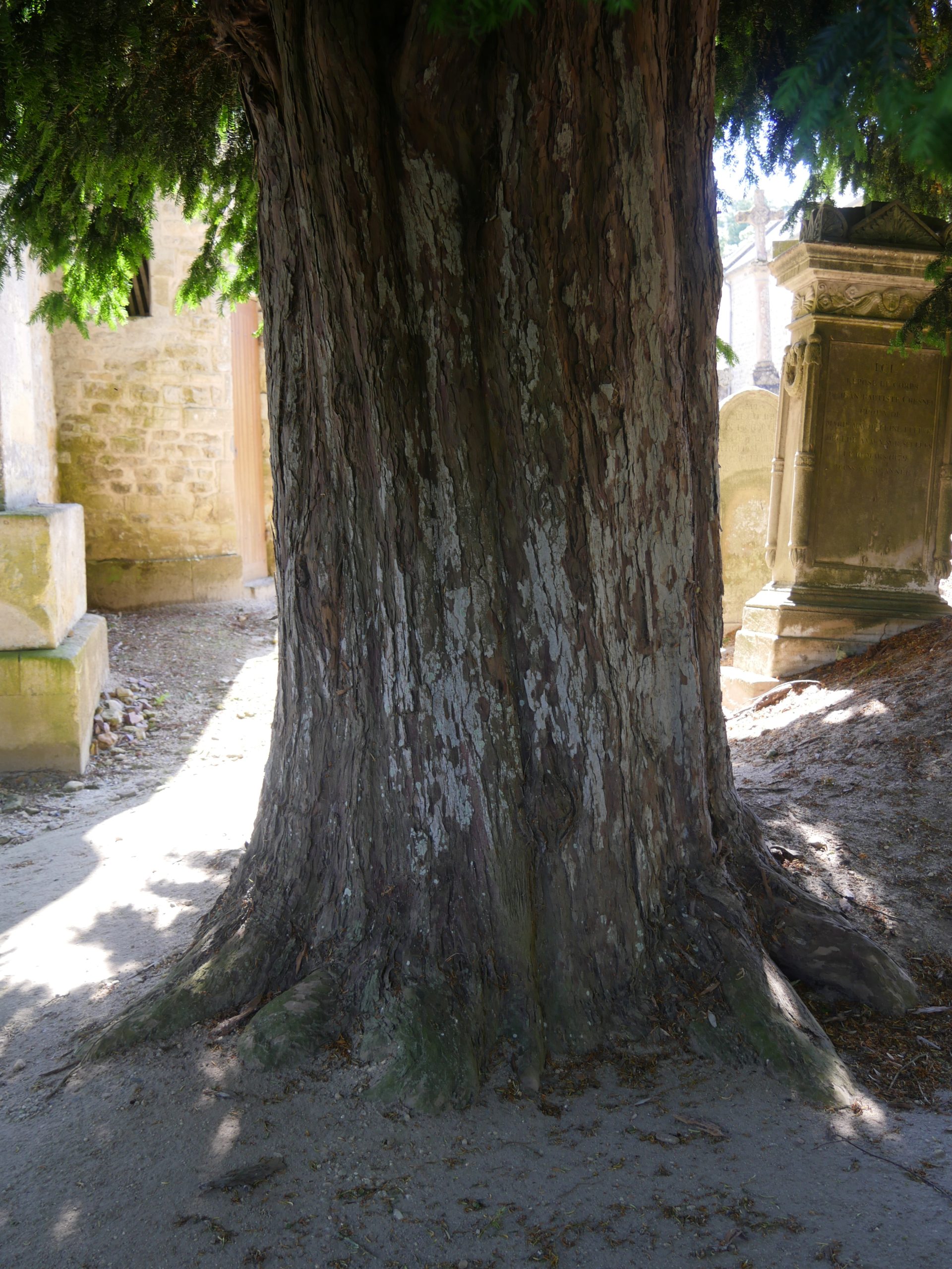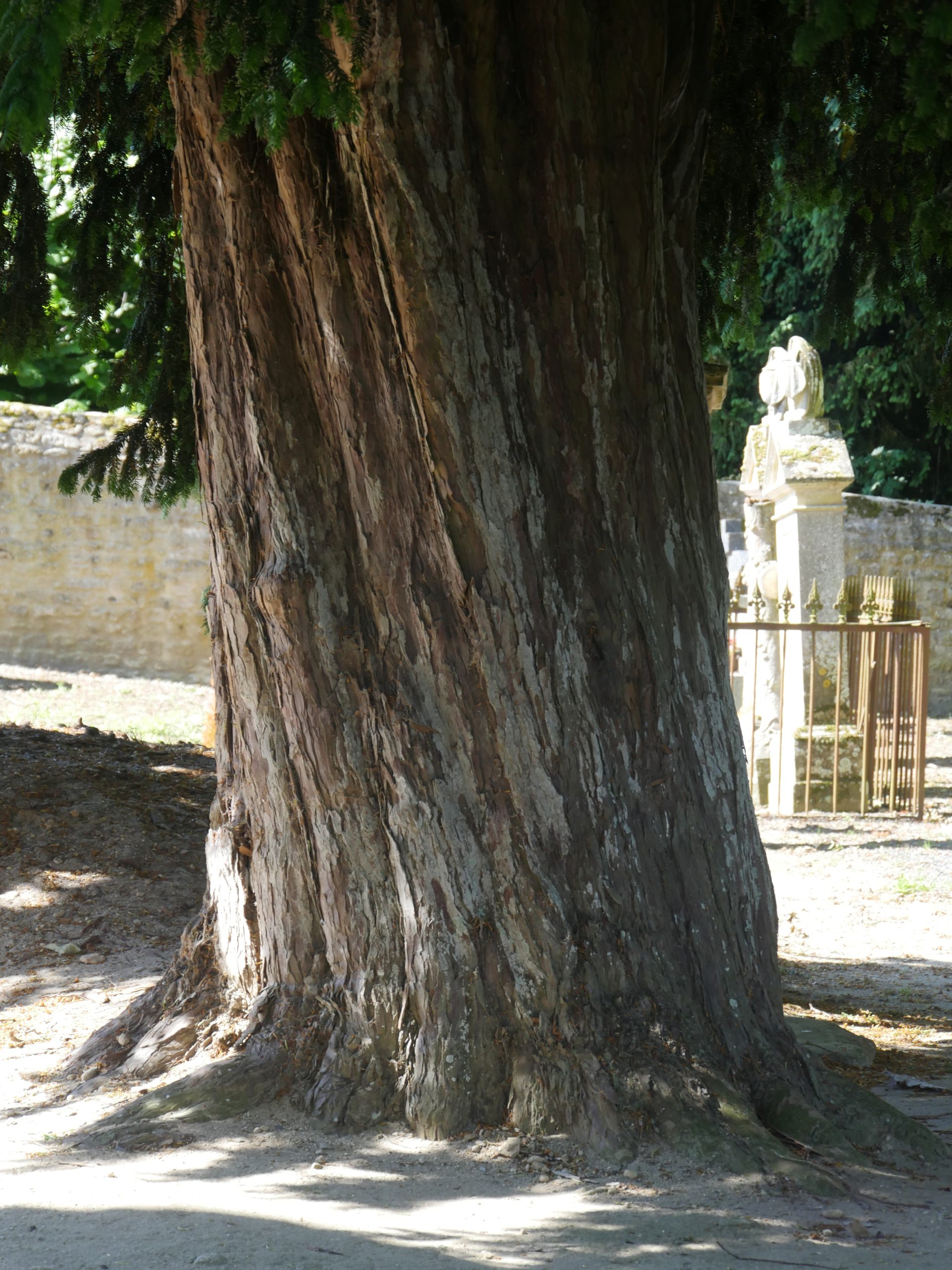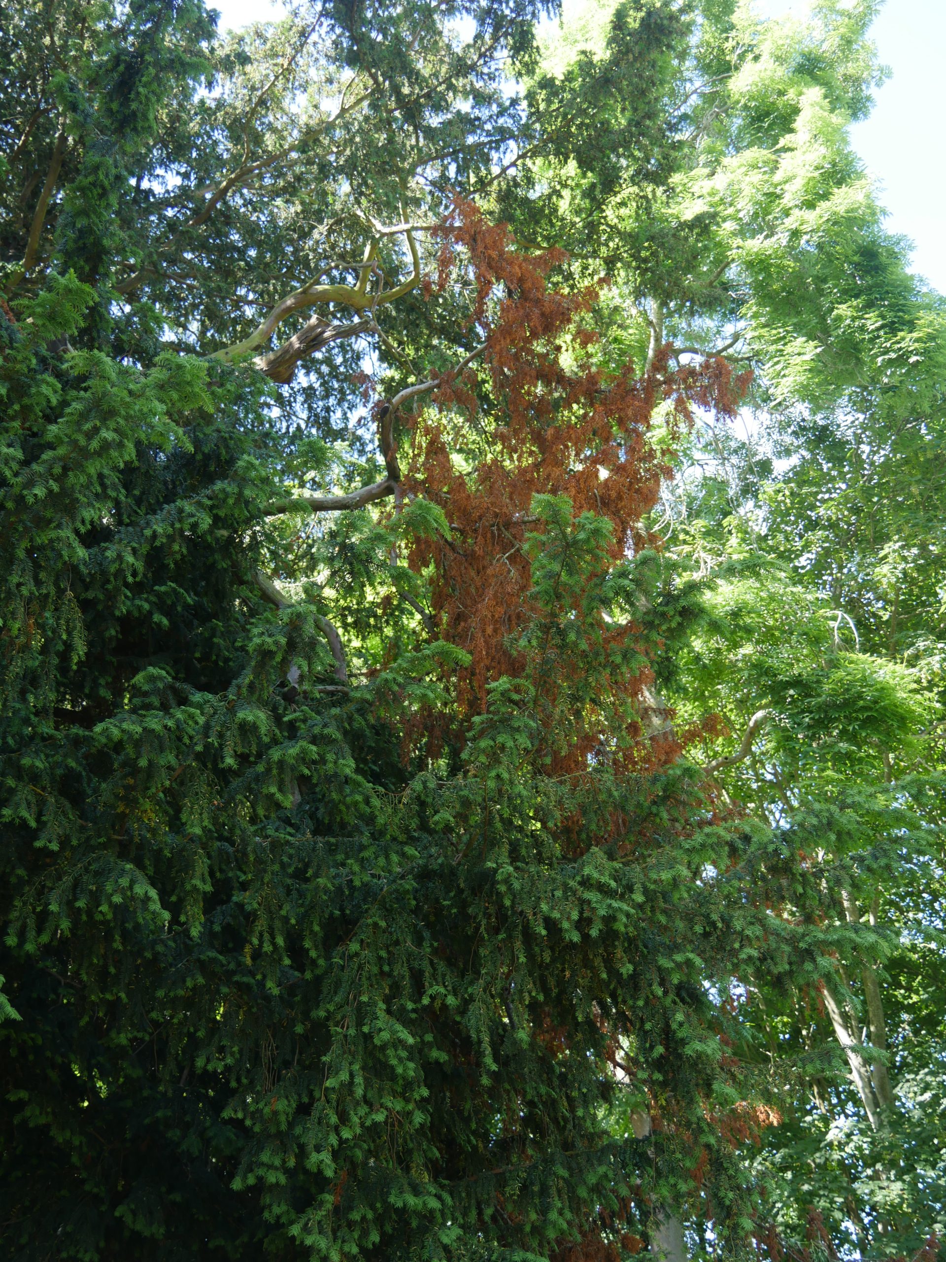Notes:A tall columnar yew with some dead branches.