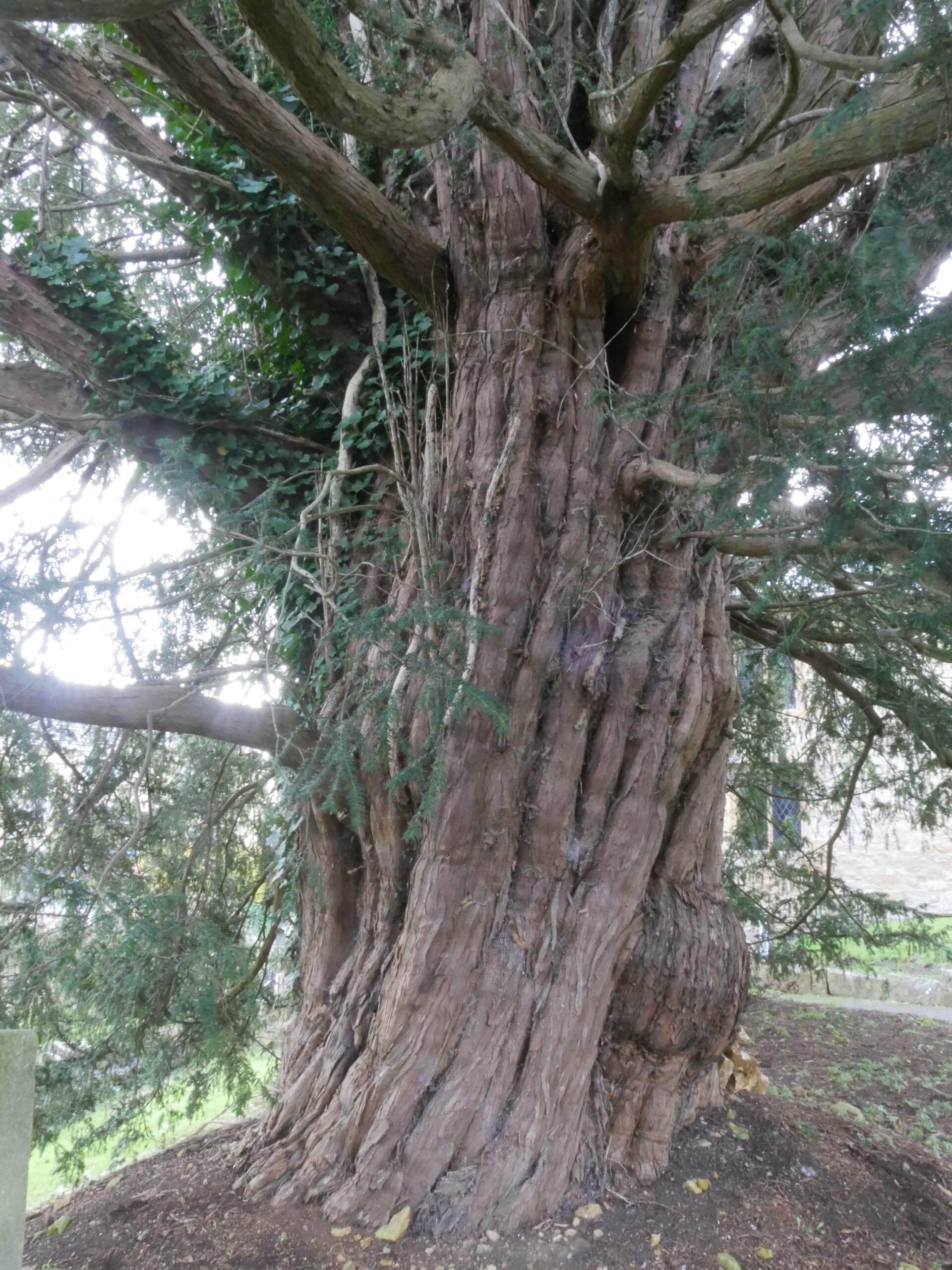 Notes:August 2007 – Tim Hills: A fine flourishing yew, of considerable height. Branching begins from about 7′ upwards, many of these are very thick with no discernible leading branch. Much adventitious growth was noted on these branches. There were no signs of hollowing. Ivy had been treated. Girth of 17′ 2” (523cm) at 1′.